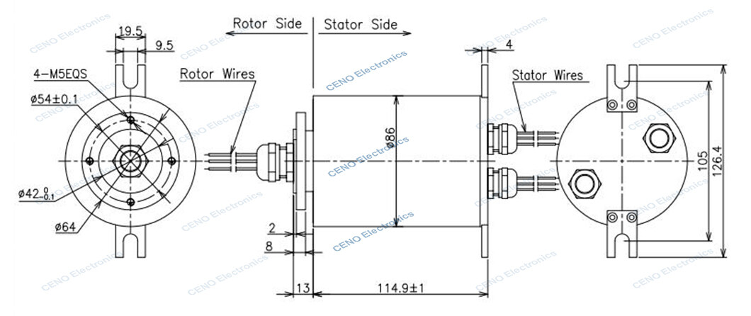 ECN000-014P1-06S is CENO new integrated slip ring which combined electrical signals and 1group Encoder signal, the protection grade is IP65 and can be up to IP68 for custom specific applications. Encoder is a sensor used to measure or control the position, speed or direction of an object in a system. In addition to producing compact, high reliable, Encoder integrated slip rings, CENO has provided units that combine conventional electrical slip rings with fiber optic rotary joint, RF Rotary union, Pneumatic / hydraulic rotary union and other commodities. More information please contact us.