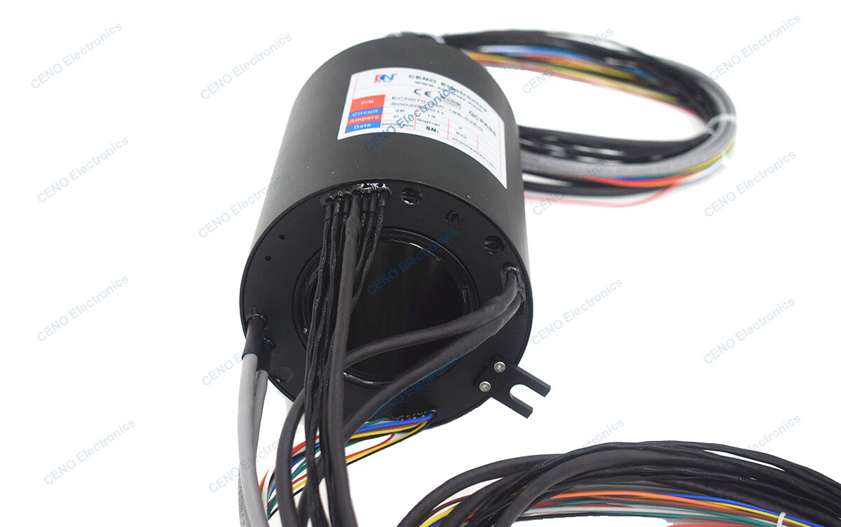 This is through hole slip ring for motion simulator application, through hole size 70mm, housing material is aluminum alloy, video signal and Gigabit Ethernet combined power to deliver in this slip ring. A slip ring can be used in any electromechanical system that requires unrestrained, continuous rotation while transferring power and signal from a stationary to a rotating structure.