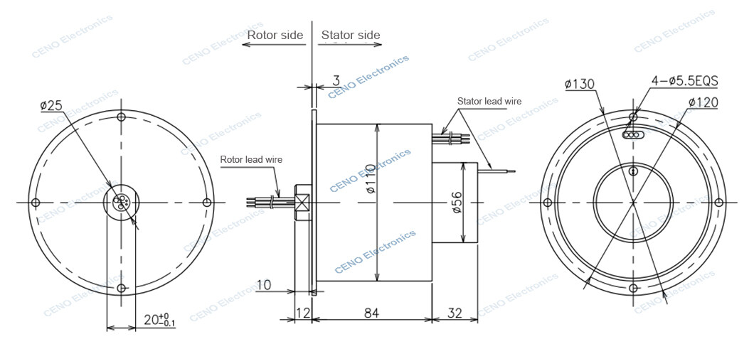 ECN000-C-03P4-02S-GS is CENO’s new designed High Speed Slip Ring and the operation speed can be up to 12000rpm as the working environment demand. There are 3 circuits for electrical power,1 group for PT100Singnal and with Copper graph and gold to gold contact materials. CENO’s High Speed Slip Ring have the feature of compact structure, small and light net weight, low consumption and long service life. Often apply to Automatic machine, test facilities and instruments, Eddy current testing machinery. Please contact us if you want to know more information about how CENO Slip Ring fits your specific applications