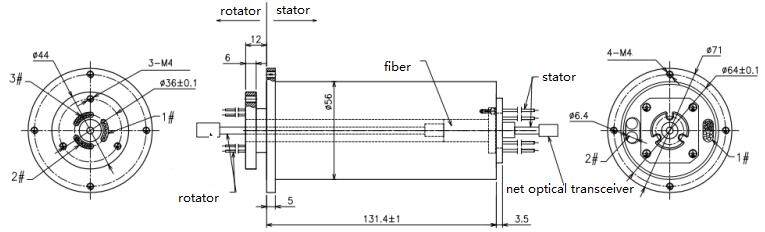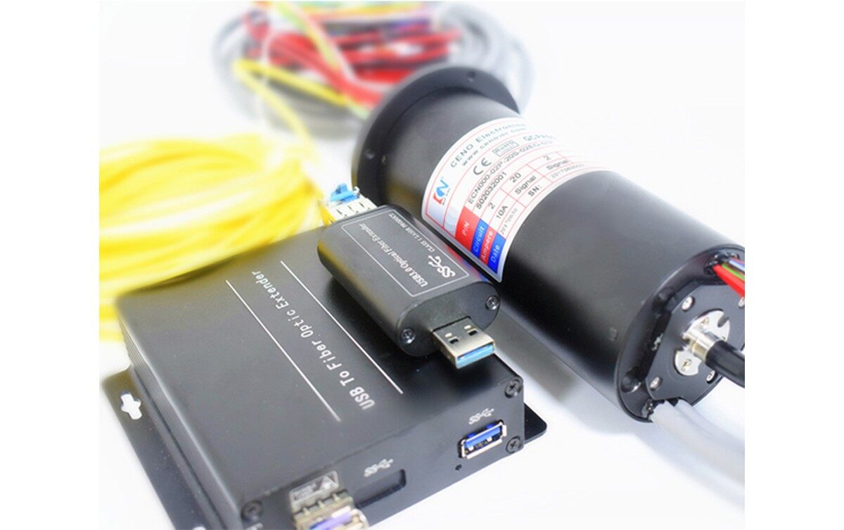 Fiber conductive slip ring specially suitable for some applications which requires to keep continuous or intermittent rotating and transmit mass data from static side to rotation side, which can improve mechanical performance, simplify system operation and avoiding damages to fiber when rotating. Can be combined with the traditional electric slip ring to transmit power and high-speed data.