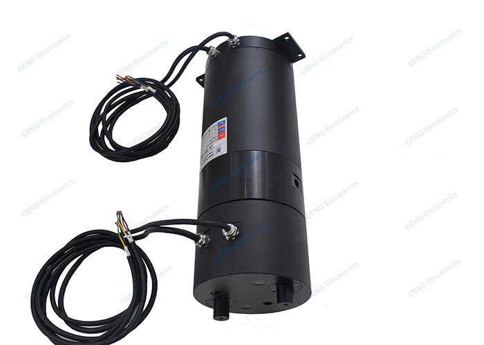 QCN0203-07P1 is CENO integrate pneumatic / hydraulic rotary union which combine 7 circuits 2A Electric signal and 2 channels gas with Max pressure 8Bar. Pneumatic – hydraulic integrate conductive slip ring can be divided into pneumatic conductive slip ring and hydraulic conductive slip ring according to the different transmission media. The working principle of pneumatic conductive slip ring is to transfer gas from the stator part to rotor device to complete the conductive transmission. More information please contact us