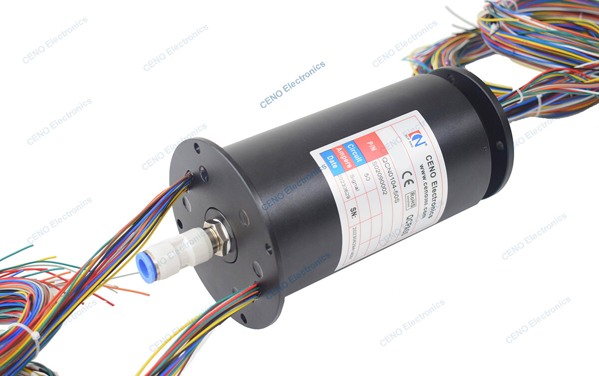 QCN0104-50S is CENO new product integrated pneumatic rotary union which combined 50 circuits power and 1 channel for air. Integrated slip ring combined pneumatic or hydraulic rotary union is designed for some special applications where requires both electric power and pneumatic or hydraulic transmission. It’s often apply to chemical and pharmaceutical, mechanical engineering, Food processing or laser cutting machinery, For more information please contact us freely.