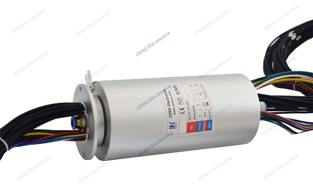 QCN0104-36P is CENO new integrated slip ring with 1 channel oxygen. Electrical slip ring and pneumatic or rotary unions combined slip ring is designed for some special applications that require both electric collector and pneumatic / hydraulic rotary unions. Take the vehicular slip ring for example, the tanks, mobile missile launchers and armored personnel carriers pose a variety of challenges. Which can prevent tube winding problem well, and can provide 1-24 pneumatic passage and hundreds wires power or signals for different specific applications, for more information please contact us freely.