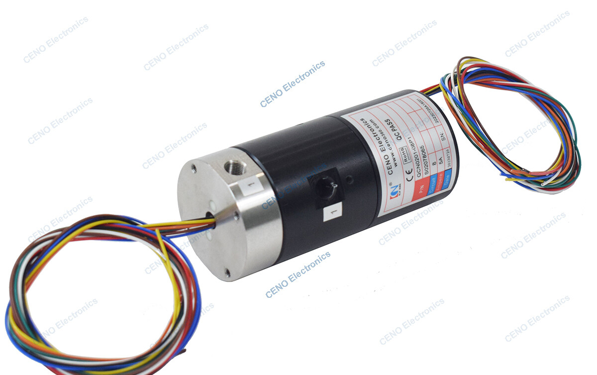 QCN0201-08P1 is CENO new integrated pneumatic rotary union which combined 8 circuit electric power and 2 channels air that applied to various environments, such as the laser engraving machine, filling machinery, food processing machinery or mechanical engineering. The increasing complexity of modern automatic machine demands slip ring that provide reliable electrical interfaces, pneumatic or hydraulic rotary union between the stationary and rotating parts of these automatic equipment. For more information about how CENO slip ring can fit your specific applications, please contact us.