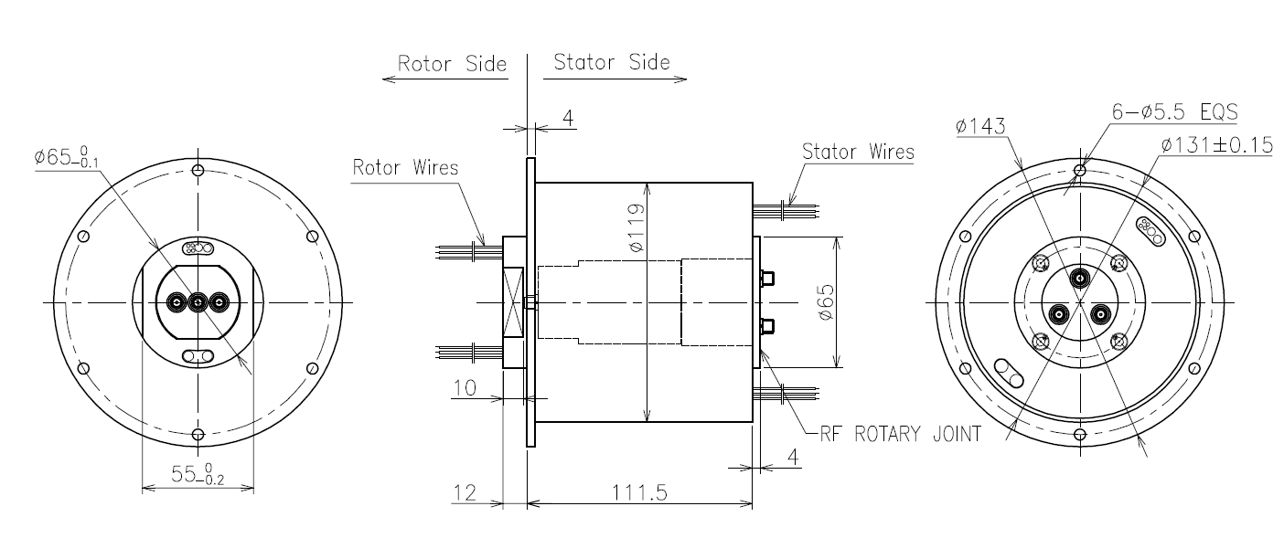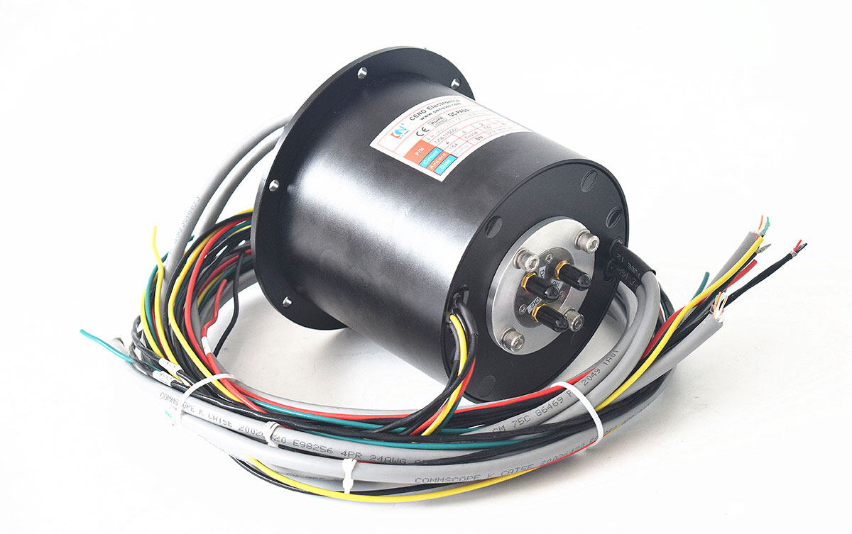 This is one hybrid slip ring which includes electrical channel, Ethernet channel and RF channels. There is no interference between each signal and power passage based on CENO specific design for the construction of the slip ring. The Ethernet transmitting is stable without data loss. RF channel with frequency up to 12GHz. Such multi signals combination design has advantage with reliable performance, no crosstalk. Typical applications are rotary table, traffic control system, surveillance, offshore cable reel. CENO accepts any customized spec according to different demands.