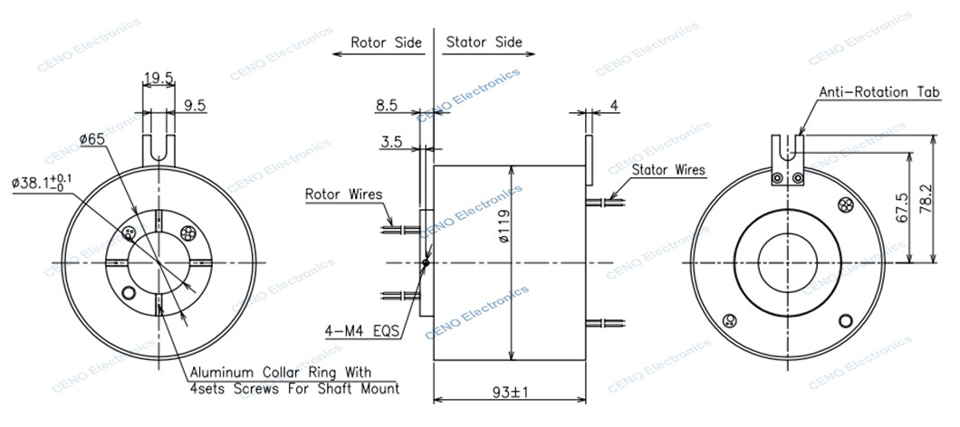 ECN038-06P-02S-01EM is one new design PROFINET Slip Ring with through hole ID38mm for Industrial automation system application from CENO Electronics. PROFINET is a standard for industrial automation using a computer network, and uses standards such as TCP/IP and Ethernet. CENO design and combine the PROFINET signal and Electrical Power into this slip ring, which can transmit various RS, NET and profinet signal stably at the same time, there’s no string code, low loss and no packet loss etc. It can be integrated many data and signal as customer different applications. For more information about how to design for your working environment, please contact us.