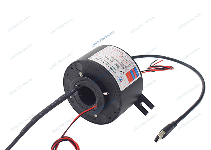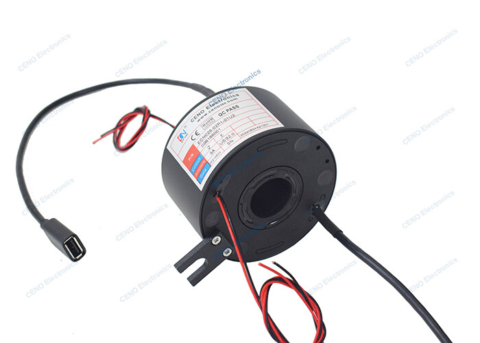 ECN025-02P1-01U2 is CENO new customized through bore slip ring which combine 2 circuits electrical power with 1 circuit USB 2.0 signal. USB Signal slip ring is one kind of series products at CENO. We provide reliable USB slip ring products with patented technology. The unique structural design and technical process can prevent external interference and internal crosstalk. USB2.0 signal slip rings are often and widely used in various communication systems. More information please contact us.