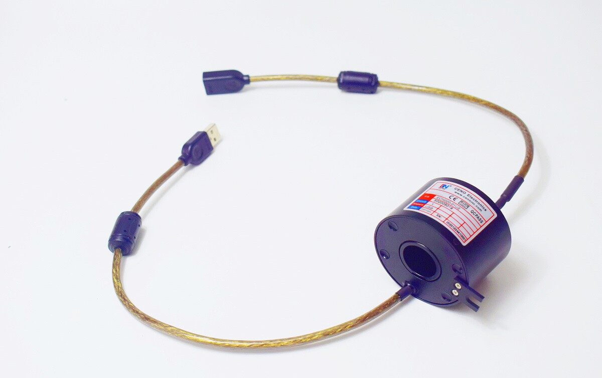 ECN020-01U2 is a high definition signal slip ring with 1 group USB2.0, developed by CENO company, which taking the lead of originality in its area with advanced design idea and manufacturing technology. It is perfectly applied to Video Surveillance field and other signals in 360° continuous rotation. It is of high quality and reliability. Compact size, stable electrical and signal performance, low friction and torque, thicker precious metal plate, longer life. Can be apply for automatic machines which require rotating transfer electric/signal/gas/liquid, solve wire winding problems. We can make customized slip ring to rotating transfer RS485/232/422, CANBUS, Profibus, CC-link, USB3.0, Gigabit Ethernet etc.