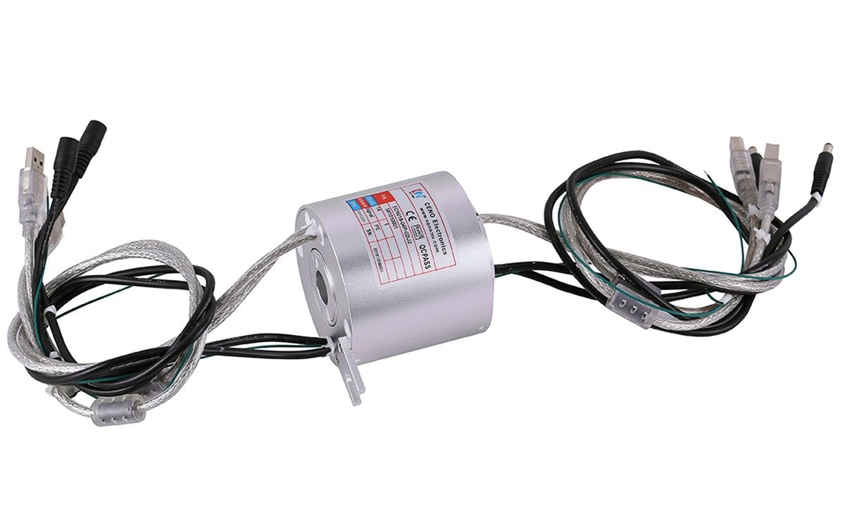 CENO USB slip ring specially designed to transmit USB1.0/USB2.0/USB3.0 signals, it can be applied to any device which needs to transmit conductive power and one or more channel USB signal during 360 degree rotating. With advantages of reliable transmitting, no packet loss, no string code, low return loss, low insertion loss. Equip amplifying module, like HUB to increase transmission distance, USB female and male connector are available.